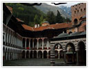 保加利亚著名的古修道院,始建于十世纪中叶,几次被毁和重建。1961年被辟为国家博物馆。座落在里拉山的峡谷中,占地8800平方米。建筑格局严谨,很像中世纪的城堡,主要建筑物有不同时期建造的教堂、防御塔和一座半圆形的四层楼房,这座楼房分东西南北四部分,有300个房间,过去可供上万的朝圣者住宿。柱廊为文艺复兴式。防御塔建于1335年,高25米,窗户狭窄,有无数射击孔,全用红砖和石头砌成,其一部分后被土耳其大炮轰坏。修道院殿堂的墙壁上,有许多出自名家的壁画、神像,蔚为珍品。院中珍藏着保加利亚第一架地球仪、手工艺品、木雕、修道院卫士使用的各种武器、朝圣妇女供献的银带扣、历代主教权杖和织金法衣以及古代皇室器物等。里拉修道院为里拉的隐士约翰所创建。几个世纪内,它都是全国最重要的修道院。从这里还兴起过一个文学流派。土耳其人入侵时,修道院曾三次被焚。奥斯曼统治期间,它被认为是“保加利亚民族精神的堡垒”。保加利亚人通过这座修道院,顽强地抵御异族奴化政策,把保加利亚民族标志保存下来。这里风景秀丽,是国家级旅游胜地之一。1983年它被列入世界遗产名录。