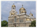 瓦尔纳市是保加利亚海滨城市和全国最大海港,人口46万。早在公元前6世纪,希腊人就在此定居,起名“奥德索斯”。公元6世纪后半叶,斯拉夫人从北部大批涌入,改名为“瓦尔纳”。这两个名字的词根都同水有关,有水边村镇之意。它长期为商业重镇和海军基地。瓦尔纳气候温和,四季分明,日照时间长,夏天平均温度在26摄氏度左右,海面风平浪静,海滩浅平辽阔,是保著名的旅游胜地,有“黑海明珠”之誉。瓦尔纳沙滩长达10多公里。依山滨海之处,多为大型旅馆,300张床位以上的大旅馆就有100多家。从南至北,依次是“康斯坦丁与埃伦娜”、“金沙滩”、“阿尔贝纳”等几个特色不同、美丽别致的避暑、疗养地。